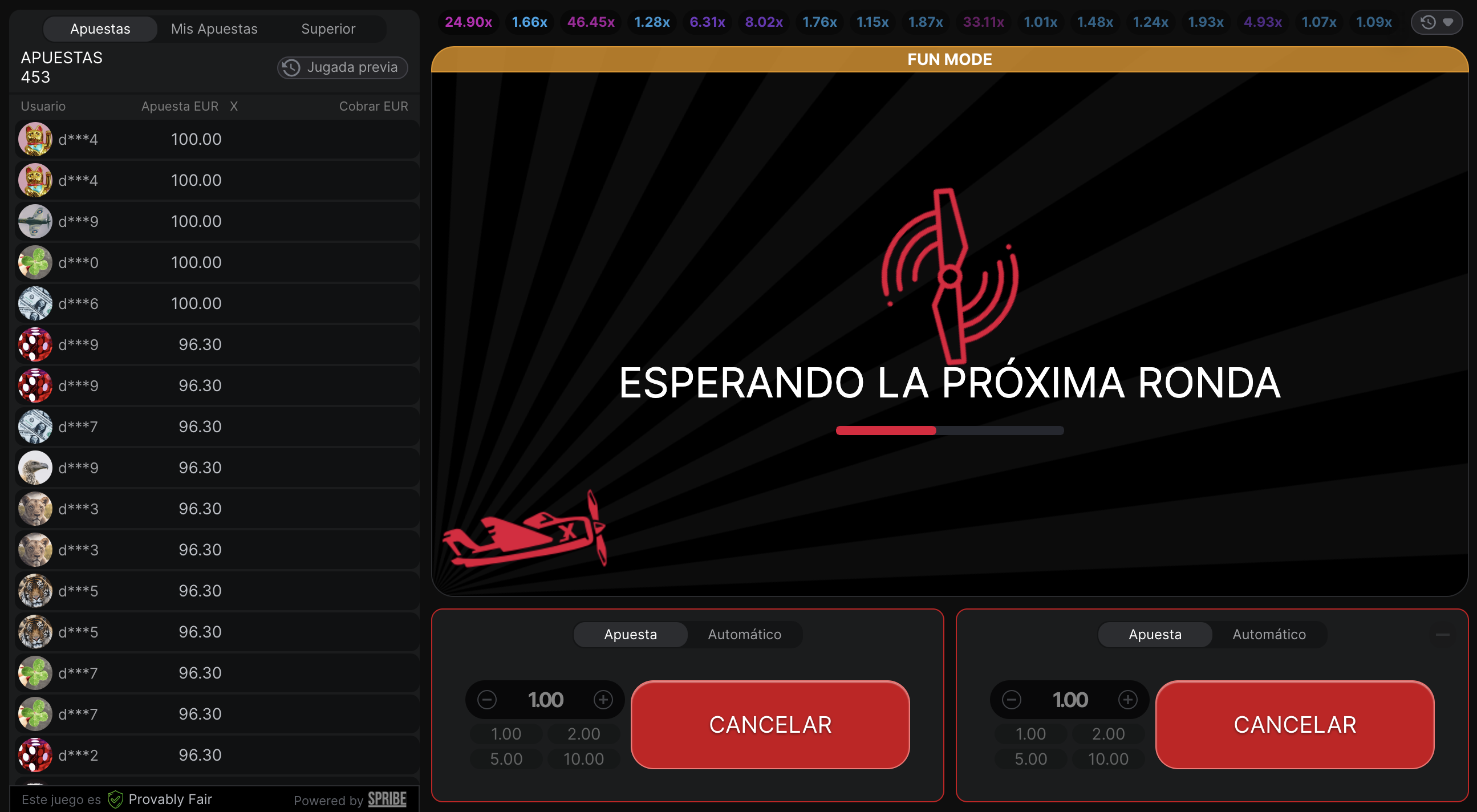 Apuesta, el avión iniciará su vuelo y tú decides cuándo retirar tu apuesta para obtener un multiplicador. Si no retiras antes de que el avión se estrelle, pierdes la apuesta.